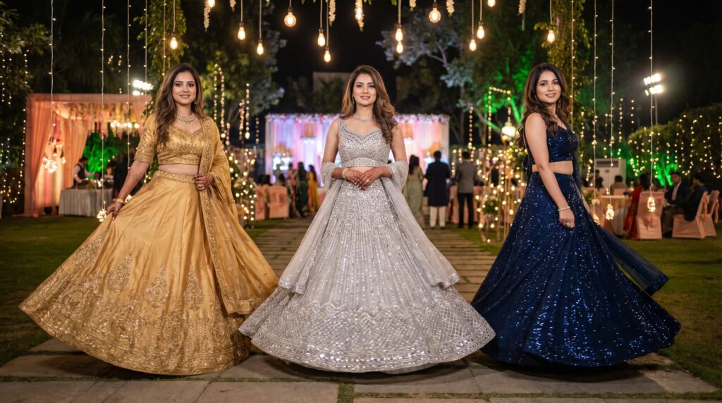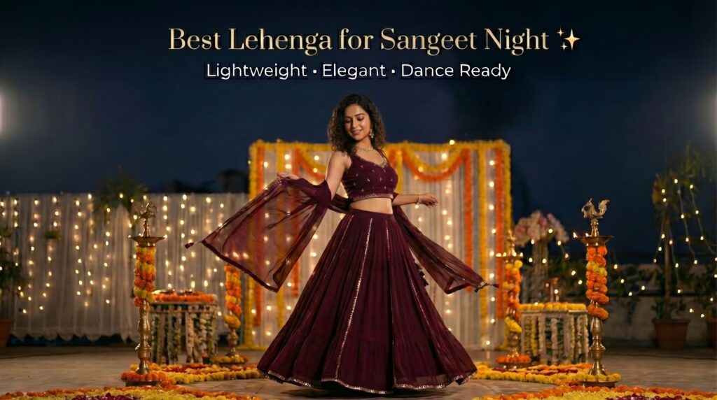 In this guide, we’ll help you find the perfect night sangeet lehenga by covering everything—from fabrics and colors to styling tips, budget options, and care.